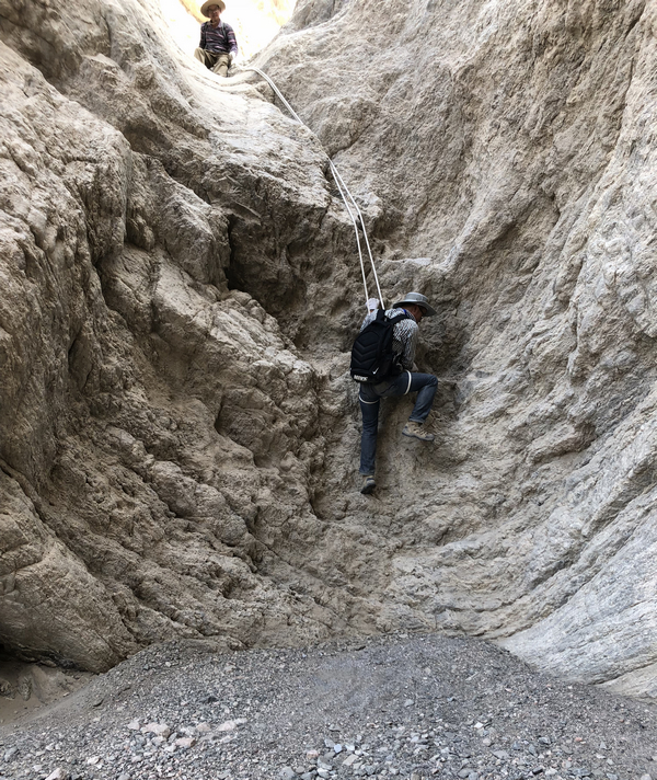 該區(qū)山勢(shì)陡峭,切割強(qiáng)烈,溝里常常出現(xiàn)十米以上的懸崖,給地質(zhì)工作帶來了極大不便,但是地質(zhì)隊(duì)員們沒有放棄,在保證安全的前提下,力爭(zhēng)走到最遠(yuǎn),爬到最高。