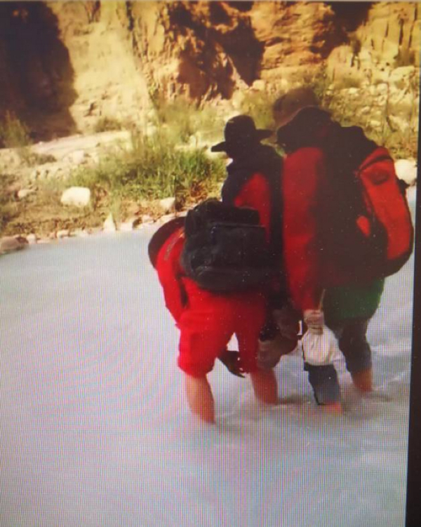 5月底,項(xiàng)目組在1號(hào)圖突擊工作,區(qū)內(nèi)沒有可以通行車輛的道路,所以該項(xiàng)目組成立突擊隊(duì),由項(xiàng)目組骨干力量帶隊(duì),小搬家進(jìn)入工區(qū)內(nèi),物資主要由騾馬和人力搬運(yùn)。進(jìn)入工區(qū)的唯一一條路需要穿越若羌河十?dāng)?shù)次,第一天僅能住在溝口,之后進(jìn)入目標(biāo)主溝,沒有任何水源,所以必須用騾馬馱運(yùn)飲用水,很多物資都要突擊隊(duì)員人力背負(fù),順溝而上,沒有道路,只能在轉(zhuǎn)石堆里走,每天每人負(fù)重?cái)?shù)十斤物資,行走十分不便,但是突擊隊(duì)員們用毅力和決心克服了種種困難,按期到達(dá)目的地。因?yàn)槿彼灾荒鼙WC每人最低的飲水量,該地區(qū)常年風(fēng)沙,第二天就遭遇了沙塵暴,到達(dá)目的地后眾人已經(jīng)疲憊不堪,稍作休整之后,突擊隊(duì)員自造土爐灶,燒火做飯。這里還有一個(gè)困難,就是防不勝防的蚊蟲,所有人均被咬了很多包,所以只能忍著悶熱,早早鉆進(jìn)小帳篷,才能躲過風(fēng)沙和蚊蟲。